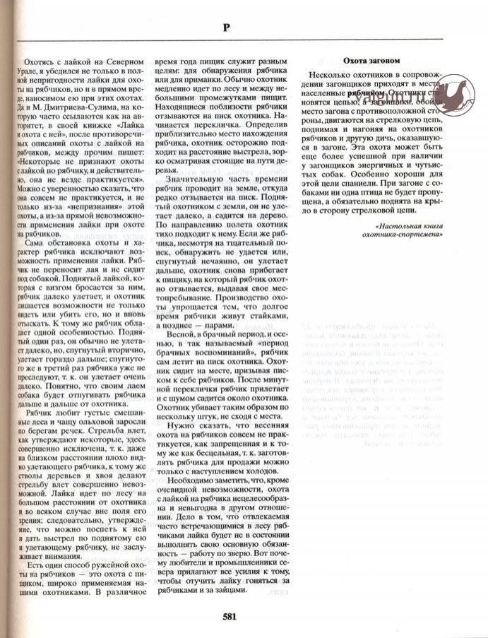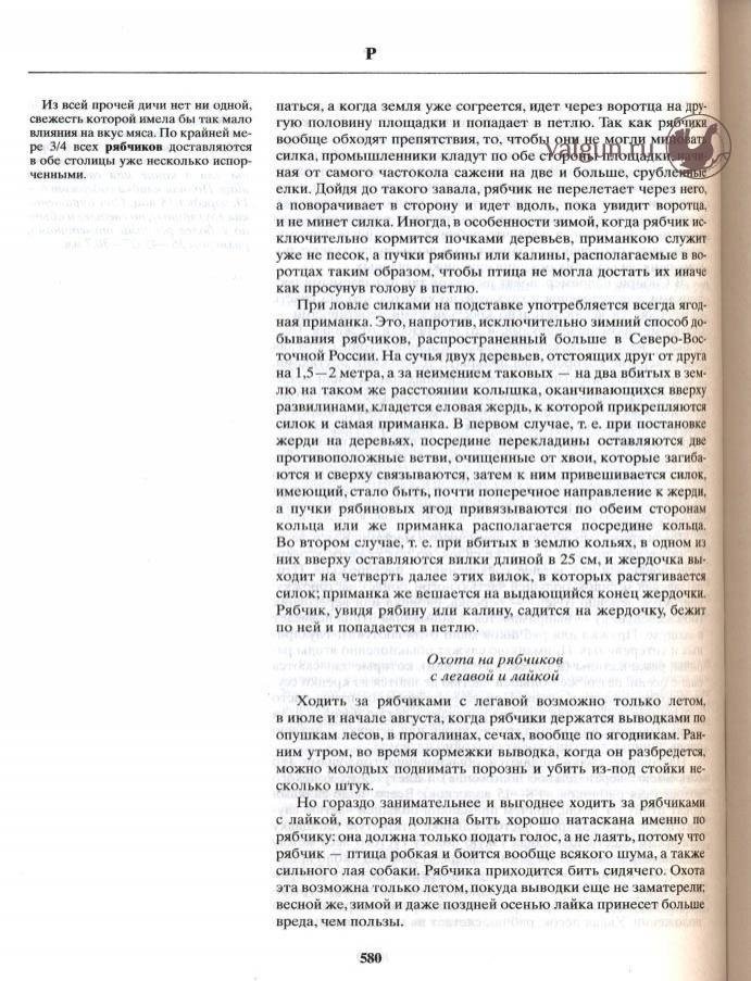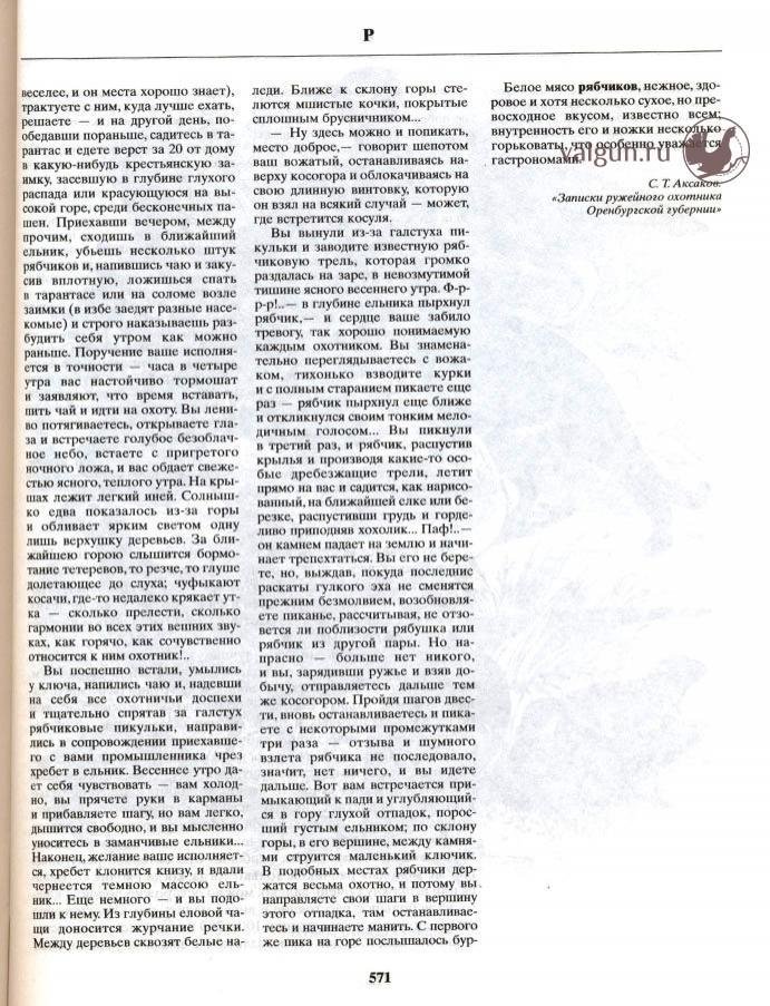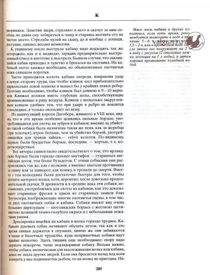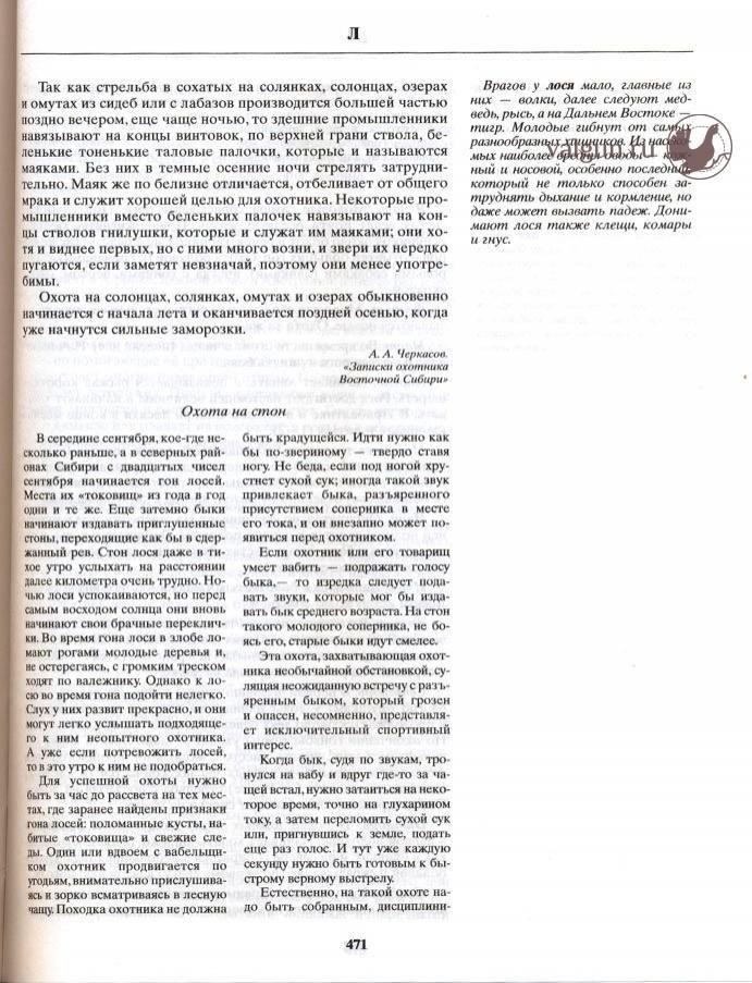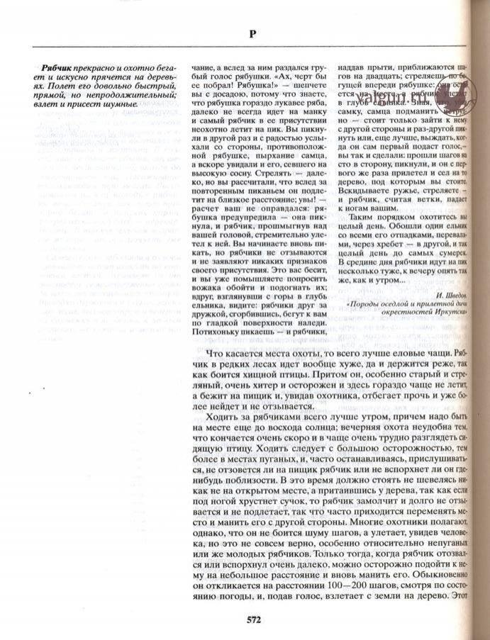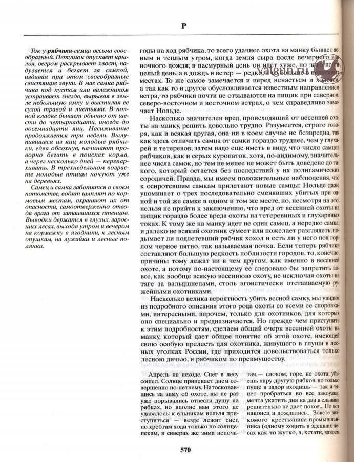 "Русская охота" не предназначена для быстрого выборочного чтения, это издание для досуга, которое читают с душой, не торопясь, рассматривая черно-белые рисунки, иллюстрирующие текст и изучая выдержки на широких полях книги. 800 страниц белой мелованной бумаги, листы тонковаты, сквозь них немного просвечивают строчки других страниц, но это не умаляет достоинства книги и вполне объяснимо - ведь будь бумага плотнее, сборник был бы ещё толще и тяжелее. Красочная обложка и корешок книги радуют глаз, суперобложка повторяет их рисунок и дополнена золотым рельефным тиснением.