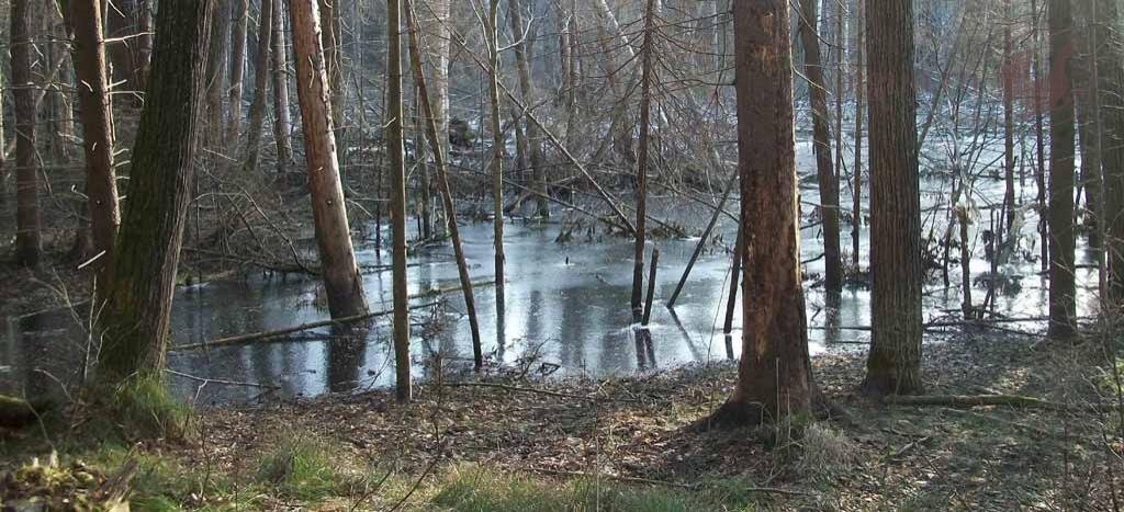 Хмурый день поздней осени. Погода пасмурная, а в лесу тем более грустно и неуютно. В старом осиннике, листья которого облетели и покрыли всю землю, еще терпимо, а вот в высоком старом тёмном ельнике совсем тоскливо. Снег уже шел несколько раз, потом таял, здесь он белеет только на поваленных деревьях. Лужи подо льдом, ночами уже достаточно устойчивый морозец и за день лед не успевает таять. Самое время поискать в лесу зайца – он уже белый, прячется в укромных уголках, выскакивает почти из под ног, а бывает из под ног в самом прямом смысле. Казалось бы белый на чёрном, а лежит так что рядом пройдешь - не увидишь. Зато выскакивает буквально как вылетает, бежит стремглав, причем совершенно не слышно.