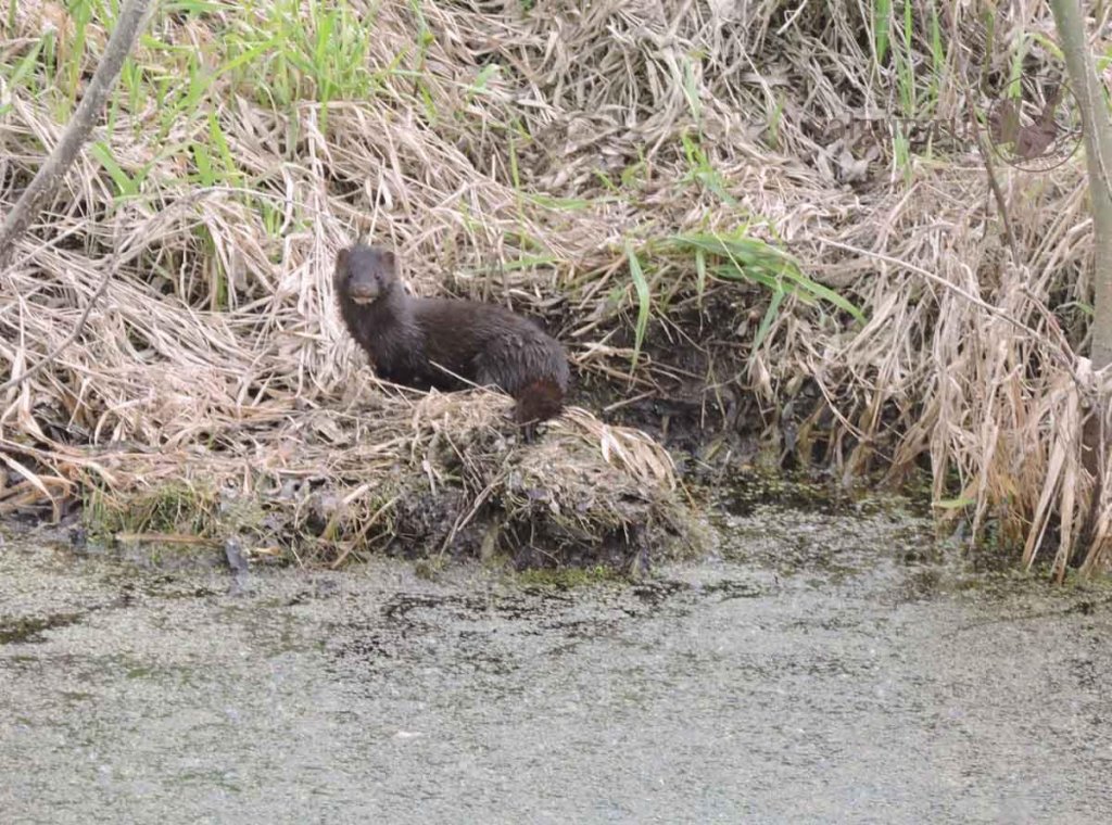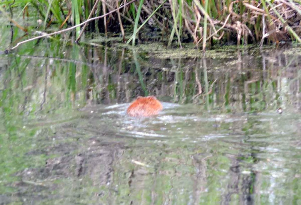 Пошел на речку с удочкой посидеть и встретил. Потом ондатра проплыла, хоть солнца и не было, но на свету удивительно рыжего цвета, обычно темно-коричневые попадаются.