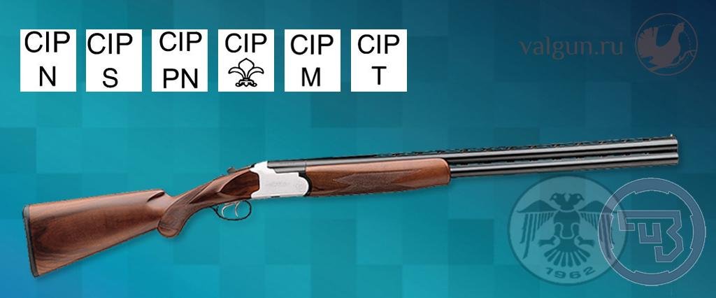 Дело в том, что маркировочные знаки на ружьях и на упаковке патронов не совпадают и могут ввести в заблуждение многих покупателей. Скажем, по стандарту на ружьях маркируется допустимое максимальное давление пороховых газов в патроннике (причем для крешерного вида испытаний) – для обычных охотничьих 12 калибра это 65МПа, для 12 «магнум» - 90МПа. Спортивные ружья, несмотря на длину патронника 70мм, испытываются давлением «магнум» и имеют маркировку 90МПа.