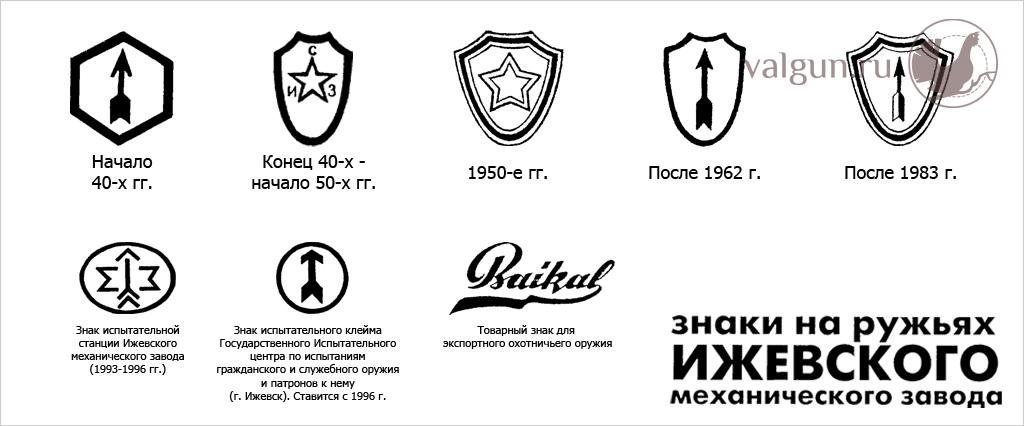 В те времена марка механического завода представляла собой щит с изображенной на нем пятиконечной звездой. На самых ранних щитах вокруг звезды стояли буквы «ИСЗ». Затем эти буквы исчезли, а в конце 1962 года вместо звезды появилась стрела. Именно такой товарный знак и стоит сейчас на основной части выпущенного заводом охотничьего оружия.