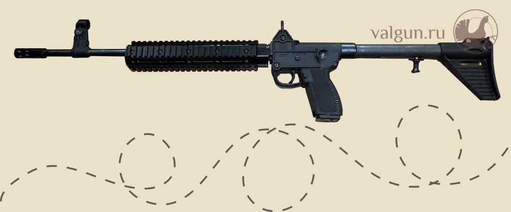 Скорее всего, изначально "это" было пистолетом-пулеметом (в интернете пишут - тактический карабин Kel-Tek Sub-2000). Естественно, у нас стало либо короткой охотничьей винтовкой под пистолетный патрон, либо самозарядным карабином для практической стрельбы.