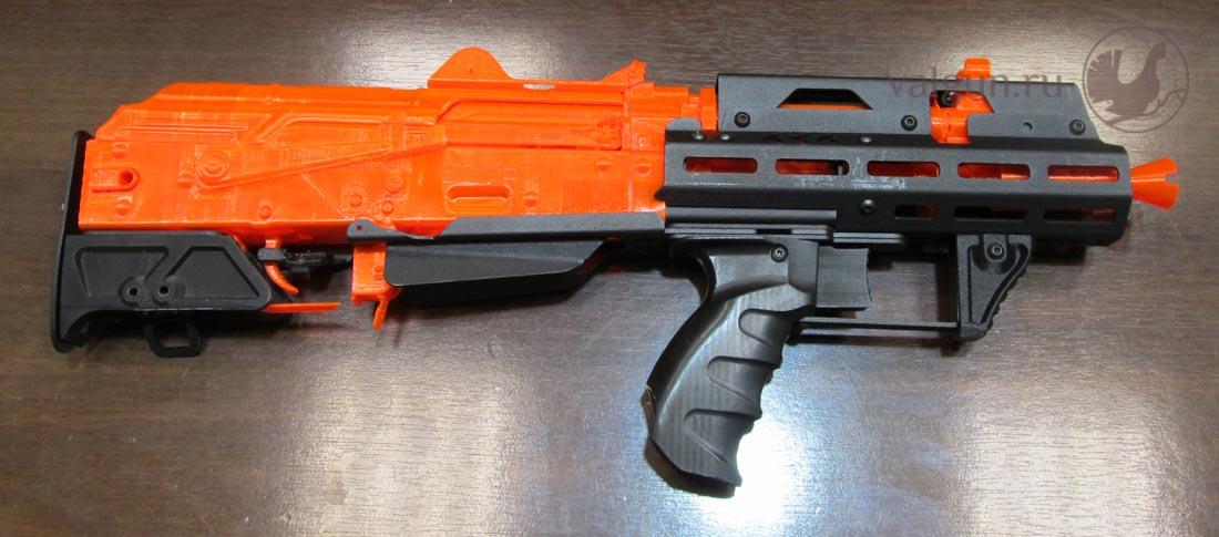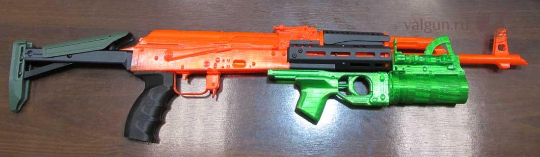 Приклад и цевье для АКМ и АК-74 с подствольником. Достаточно классический тип. В принципе доступно и для гражданского рынка, поскольку общая длина 86см. Цевье позволяет крепить различный обвес, например коллиматор.
